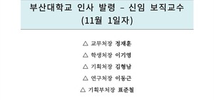 우리 대학이 이례적인 고위직 인사를 단행했다. 굵직한 정부 사업을 앞두고 지난해 5월 출범한 최재원 총장 1기의 바통을 18개월 만에 넘겨받은 2기가 사업 속도에 박차를 가하겠다는 것으로 보인다.7일 취재를 종합하면 우리 대학은 △교무처장 △학생처장 △기획처장 △연구처장 △기획부처장 주요 보직 인사를 지난 1일 발표했다. 이에 따라 △교무처장에 정재훈(분자생물학) 교수 △학생처장에 이기영(사회복지학) 교수 △기획처장에 김형남(전기전자공학) 교수 △연구처장에 이동근(기계공학) 교수 △기획부처장에 표준철(수학) 교수가 임명됐다. 우리