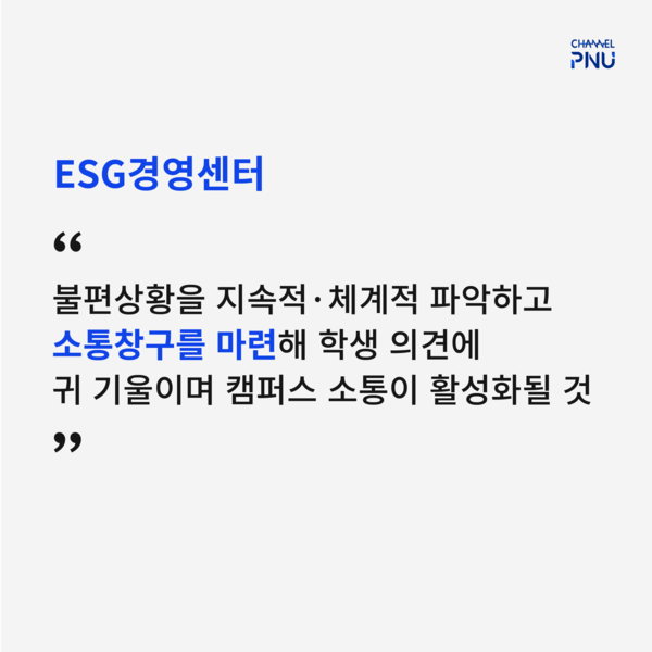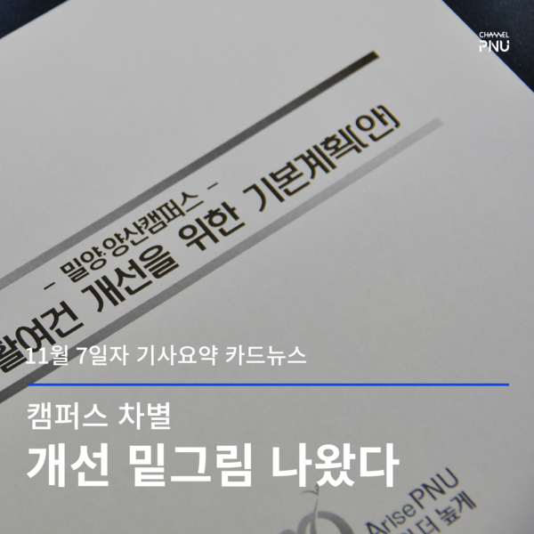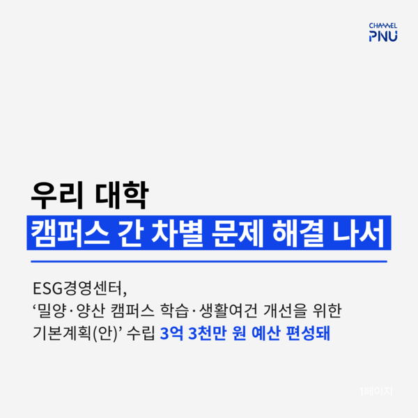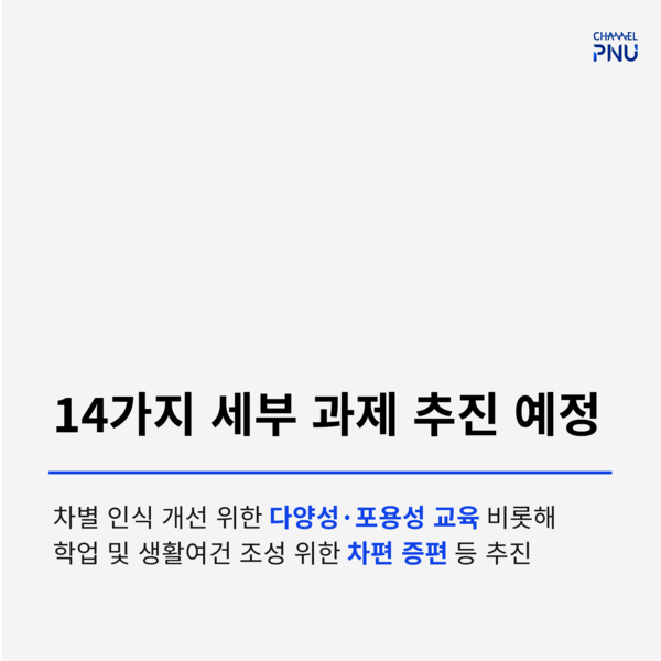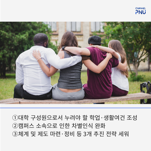 유익해요1공유하고 싶어요0좋아요0화나요0후속기사 원해요0 관련기사 캠퍼스 차별 개선 밑그림 나왔다 박건희 기자 geonhui1224@naver.com 다른기사 보기 저작권자 © 채널PNU 무단전재 및 재배포 금지 당신만 안 본 뉴스 [2026 학생회] 투표 전 필독, 총학 세 후보가 말하는 비전 총학 선본 '온라인 여론 개입' 의혹에 선관위 조사 [2026 학생회] 단과대·동연 후보들 한눈에 보기 [특집] 채널PNU 주최 '총학 후보자와의 만남' 풀영상·전문 공개 총학 선관위원장, 공정성 훼손 논란으로 해임 총학 후보 토론회, 현안 논했지만 구체성은 '글쎄' 부산대 야간 무인 편의점, 화재엔 '무방비' [2026 학생회] 투표 전 필독, 총학 세 후보가 말하는 비전 개의 댓글 회원로그인 작성자 비밀번호 댓글 내용입력 댓글 정렬 최신순 추천순 답글순 BEST댓글 BEST 댓글 답글과 추천수를 합산하여 자동으로 노출됩니다. 닫기 더보기 댓글삭제 삭제한 댓글은 다시 복구할 수 없습니다. 그래도 삭제하시겠습니까? 비밀번호 닫기 댓글수정 댓글 수정은 작성 후 1분내에만 가능합니다. 본문 / 400 비밀번호 닫기 내 댓글 모음 닫기 주요기사 11월 4주 효원알리미 Beyond Borders, Within Growth: PNU Students Share Their Global Stories 총학 후보 토론회, 현안 논했지만 구체성은 '글쎄' Three Candidates Face Off in PNU GSA Election After Nine Years 총학 선관위원장, 공정성 훼손 논란으로 해임 Vacant Houses Reborn as Community Hubs in Busan