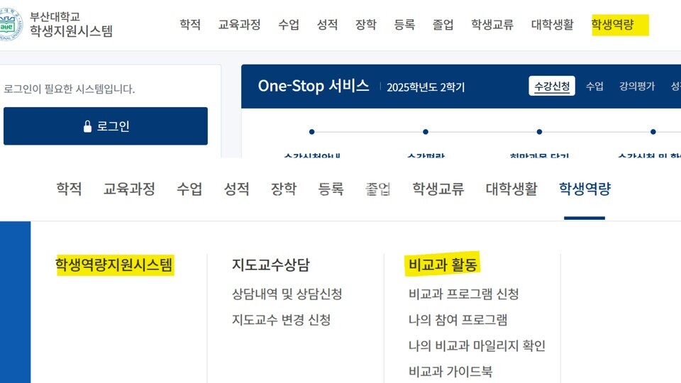 우리 대학이 주최하는 △특강 △공모전 △멘토링 △캠프 △상담·컨설팅 등이 주요 대상이다. 교육혁신과가 비교과 프로그램 운영을 총괄하지만, 각 프로그램은 대학본부 부서와 단과대학, 개별 학과 등이 개설 운영한다. 올초에 만들어진 ‘2025 비교과 프로그램 가이드북’에 따르면, 올해는 △학습 역량 강화 프로그램(67개) △진로·취업 역량 강화 프로그램(26개) △창업 역량 강화 프로그램(6개) △상담 프로그램(9개) 등 총 108개의 프로그램이 마련됐으며 신청은 학생역량지원시스템에서 할 수 있다.